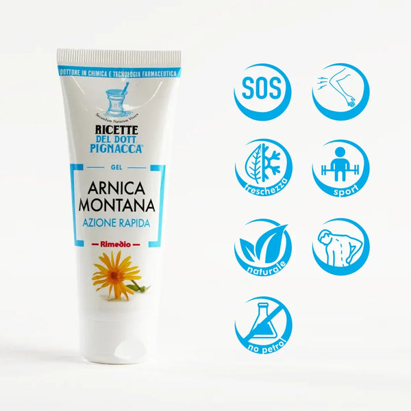 BESCHREIBUNG / Erfrischt und lindert, fettet nicht und klebt nicht Erfrischendes Gel zur sofortigen Aufnahme, ein SOS-Mittel, das Sie immer bei sich haben können. Arnica Montana, im Volksmund als „Herbstkraut“ bekannt, ist für seine entzündungshemmenden Eigenschaften bekannt und hilft, Schwellungen und Entzündungen zu reduzieren*. Dank seiner antiödematösen Eigenschaften wird es zur Behandlung von Prellungen, Hämatomen, Verstauchungen, Muskelschmerzen und Muskelkater, Traumata, Zerrungen und Muskelermüdung* empfohlen. Perfekt nach dem Sport, um die Muskelregeneration zu unterstützen. Es enthält außerdem natürliches Menthol, das erfrischend und beruhigend wirkt, und eine Mischung ätherischer Öle, die die Wirkung der Arnika verstärken.