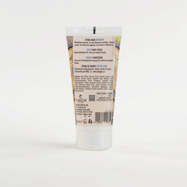BESCHREIBUNG / Unverzichtbar in der täglichen Routine, raffinierte und zart duftende Handcreme, die vor atmosphärischen Aggressionen schützt. Es ist intensiv feuchtigkeitsspendend und nährend, hält die Hände weich, glatt und sichtbar gepflegt und verleiht ihnen bei jeder Anwendung ein seidiges Gefühl. Angereichert mit pflanzlichem Glycerin, das Wasser auf der Hautoberfläche anzieht und speichert und so für eine tiefe, langanhaltende Feuchtigkeitsversorgung sorgt. Kamillenextrakt wirkt beruhigend und lindert dehydrierte und gerötete Hände, während Vitamin E mit seinen antioxidativen Eigenschaften vor freien Radikalen schützt und die Textur und Gesundheit der Haut erhält. Es ist ideal für alle Hauttypen, mit besonderem Augenmerk auf trockene und empfindliche Haut.